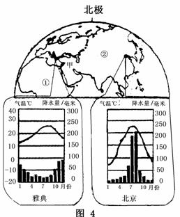 (2)雅典和北京相比,气温年较差大的城市是 。