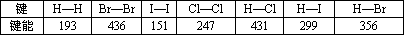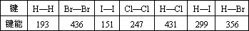 键 | H-H | Br-Br | I-I | Cl-Cl | H-Cl | H-I | H-Br |
