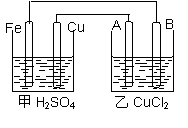 (1)甲装置是 池,乙装置是 池且Fe极为 极,A极为 极