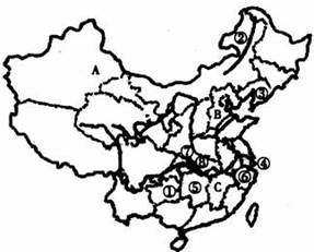 (2)2010年1月17日0时12分,中国在C(城市) 卫星发射中心用“长征三号”运载火箭成功发射第三颗北斗导航卫星。C(城市)所在的省区有我国九大商品粮基地之一 。