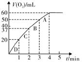 (3)某同学要利用乙装置测定某H2O2溶液的物质的量浓度。在锥形瓶中加入0.10 mol MnO2粉末后加入50 mL 该H2O2溶液,在标准状况下放出气体的体积和时间的关系如图所示。![]()