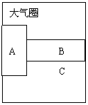 读右图“地球圈层构成示意图”,图中所示的圈层A、B、C分别是