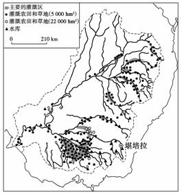 读“墨累—达令河流域重要水库和灌溉区的分布图”,分析完成下列问题。(10分)