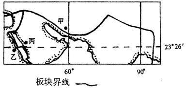 2004年12月26日5时26分图中甲地发生6.3级地震,造成严重人员伤亡。甲地地震产生的原因是
