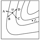 (1)图中甲点处的箭头表示甲点空气运动及受力状况,则各箭头分别表示:
