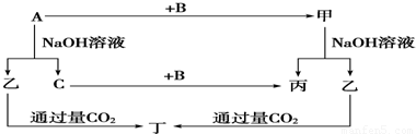 (2)乙的电子式为 ,元素A与B形成原子个数比为1∶1的相对分子质量最小化合物的结构式为 ;