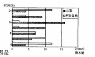 右图为某地区山顶与相邻河谷盆地降水量日变化统计图,读图回答6—7题。