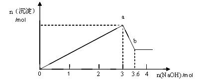 (9分)现有FeCl3、AlCl3的混合溶液100mL,逐滴加入NaOH溶液,生成沉淀的物质的量随加入的NaOH的物质的量的关系如图。