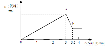 现有FeCl3、AlCl3的混合溶液100mL,逐滴加入NaOH溶液,生成沉淀的物质的量随加入的NaOH的物质的量的关系如图。![]()