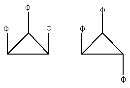 1,2,3-三苯基环丙烷的3个苯基可以分布在环丙烷平面的上下,因此有如下2个异构体.[φ是苯基,烷用键线表示,C、H原子都未画出]