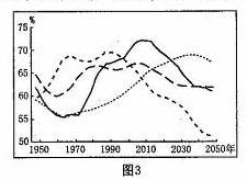 出现。读图3“中国、美国、日本和印度劳动年龄