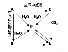(12分)A、B、C、D、E五种物质都含同一种元素,C为一种淡黄色的固体。它们按下图所示的关系相互转化,已知A为单质。分别写出有关反应的化学方程式。![]()
