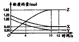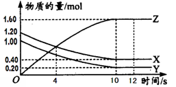 某反应中,X、Y、Z三种物质的物质的量随时间的变化如图所示。下列说法正确的是![]()