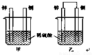 将锌片和铜片以下图所示两种方式分别插入同浓度稀硫酸中。