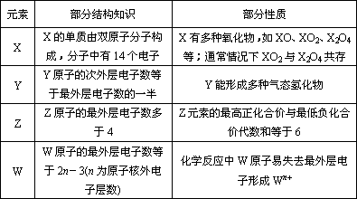 X、Y、Z、W是短周期的四种元素,有关它们的信息如下表所示.