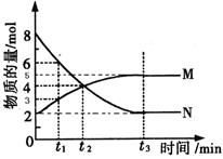 ,其中气体M、气体N的物质的量随时间变化的曲线如图所示:![]()