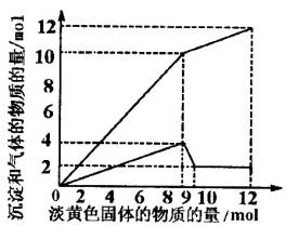 某溶液中可能含有Fe2+、Mg2+、Cu2+、NH4+、Al3+。当加入一种淡黄色固体并加热溶液时,有刺激性气体放出和白色沉淀生成,加入淡黄色固体的物质的量(横坐标)与析出的沉淀和产生气体的物质的量(纵坐标)的关系,如图所示。可推知溶液甲含有的离子是_______,它们的物质的量浓度之比为_______,所加的淡黄色固体是(化学式)_______。