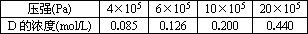dD(g)+eE(g),建立平衡后,维持温度不变而压强改变,测得D的浓度变化如下: