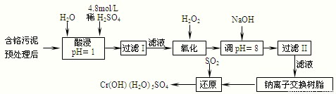 Ⅱ.某工厂对制革工业污泥中Cr(Ⅲ)回收与再利用工艺如下(硫酸浸取液中金属离子主要是Cr3+,其次是Fe3+、Al3+、Ca2+、Mg2+):![]()