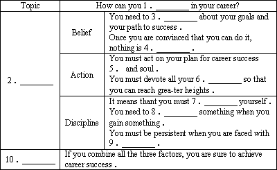 Action in itself is not enough to increase the chances of success.But disciplined action would do that.One of the main reasons why people fail is that there is no discipline in their action.They give themselves excuses when they cannot consistently go ahead with their plans.You need some form of sacrifice(牺牲)if you want to achieve success in your career.That sacrifice takes discipline.Discipline also ensures that you can be persistent(坚持的), especially when you're faced with challenges after challenges in your journey to success.Discipline is the “untiring, determined hands and legs ” part of the three critical success factors.