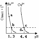某温度下,将Fe(OH)3(s)、Cu(OH)2(s) 分别置于蒸馏水中达到沉淀溶解平衡后,金属阳离子浓度随溶液