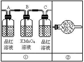 (3)实验时若观察到:①中A瓶中的溶液褪色,B瓶中溶液颜色逐渐变浅,C瓶中溶液不褪色,则A瓶的作用是_________,B瓶的作用是_______,C瓶的作用是________.