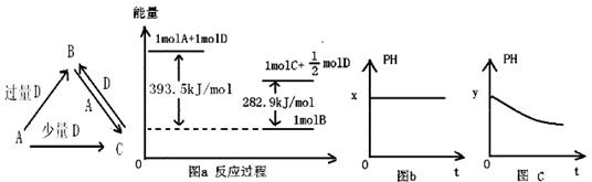 ①若图b符合事实,则D为________(填化学式),此时图b中x________7(填“﹥”“﹤”“=”)。②若图c符合事实,则其pH变化的原因是_______(用离子方程式表示)