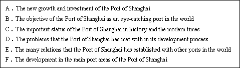 Following the continuous and steady new growth in China’s national economy, the Port of Shanghai has, over the six years from 1988 to 1993, made an investment of RMB¥2.3 billion in capital construction and renovation(革新), and updated a large number of handling machines.Both cargo throughput(吞吐量) capacity and handling efficiency of the port have increased remarkably.