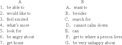 把A栏中的短语与B栏中的英文释义搭配起来。