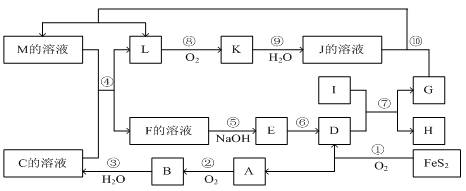 (14分)下图是无机物A~M在一定条件下的转化关系(部分产物及反应条件未列出)。其中,I是既能与强酸反应生成氢气又能与强碱反应生成氢气的金属,K是一种红棕色气体,D的俗名叫铁红, A是形成酸雨的主要气体。![]()