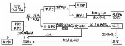 (1)单质F的化学式为 。 (2)溶液I中所含金属离子是 。