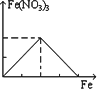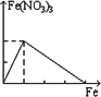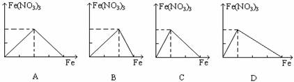 过量铁跟一定量硝酸反应最终生成硝酸亚铁,下列图象是表示铁和反应过程中生成的硝酸铁之间的物质的量(mol)的关系,其中正确的是 | |