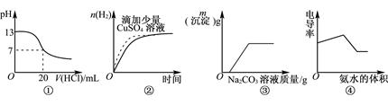 | C.图③表示向CaCl2和盐酸的混合溶液中滴加Na2CO3溶液 |