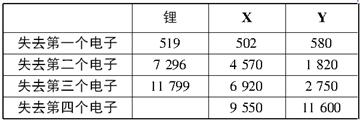 ①通过上述信息和表中的数据分析为什么锂原子失去核外第二个电子时所需的能量要远远大于失去第一个电子所需的能量______________________________。?