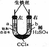 | D.a、b两处具有相同的电极反应式:Fe-2e-=Fe2+ |