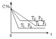 xC(g),在密闭容器中进行,下图表示反应在不同时间t、温度T和压强P与C在混合气体中的百分含量(C%)的关系曲线,则正确的是( )![]()