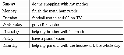假设你叫Mark,你过了一个非常开心和健康的暑假,你去看望了你的外公外婆,和爸爸一起去爬山,常常帮助妈妈干家务,几乎没有上网打游戏,有时候和家人一起看电视,比如中国达人秀“China’s Got Talent”,你还经