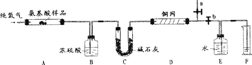 实验室用燃烧法测定某种a一氨基酸X(CXHYOZNP)的分子组成.取1.67 g X放在纯氧中充分燃烧,生成CO2、H2O和N2.现用下图所示装置进行实验(铁架台、铁夹、酒精灯等未画出),请回答有关问题: