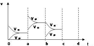2SO3(g),△H<0达到平衡时,由于条件改变而引起反应速度和化学平衡的变化情况,ab过程中改变的条件可能是 ;bc过程中改变的条件可能是 ;若增大压强时,反应速度变化情况画在c-d处。![]()