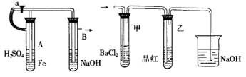 (2)上述装置的实验结束后,取A管内反应所得溶液,隔绝空气小心蒸干后,再高温煅烧(有关装置及操作已略去),最后留下红色固体。将分解时产生的气体按图Ⅱ所示装置依次通过洗气装置,结果试管甲内出现白色沉淀,试管乙内溶液红色褪色,回答: