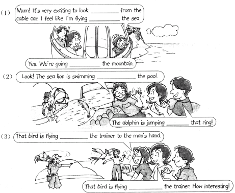 Sandy won the second prize in the writing competition. Her parents are taking her to the park as a reward. Complete the conversations with the correct prepositions below.