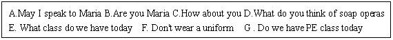 B: We have English, math, Chinese and PE in the morning. Then History and computer in the afternoon.