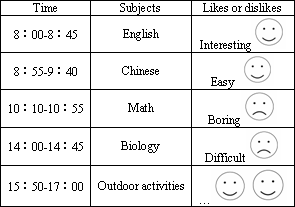 假如你是王海,请根据下列信息介绍一下你在学校的课程和对课程的喜好程度。可适当展开想象。开头已给出。