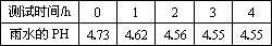 | 雨水的pH | 4.73 | 4.62 | 4.56 | 4.55 |