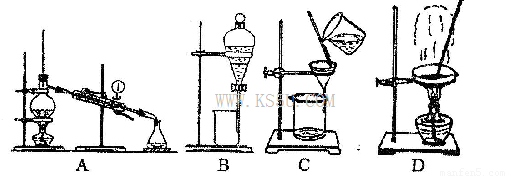 (4)从②溶液中得到氯化钠固体,应选择下列装置中的______________(填代表装置图的字母,下同);分离④与⑦的混合液,应选择下列装置中的________________。![]()