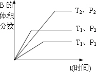 qC(g)在密闭容器中进行。如图所示反应在不同时间t,温度T和压强P与反应物B的体积分数的关系曲线。根据图象填空