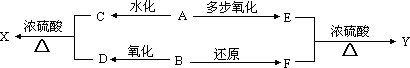已知:RCH=CH2RCH2COOH,下图表示有机物A、B、C、D、E、F、X、Y之间的转变关系: