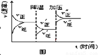 2C+3D的化学反应速率与化学平衡随外界条件改变(先降温后加压)而变化的情况,由此可推断![]()