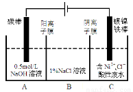 工业上电解法处理含镍酸性废水并得到单质Ni的原理如图所示。下列说法不正确的是![]()