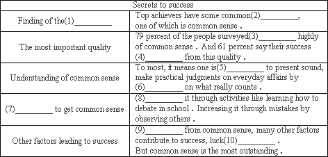 Besides common sense, there are many other factors that influence success:knowing your field, self-reliance, intelligence, the ability to get things done, leadership, creativity, relationships with others, and of course, luck.But common sense stands out.If you develop these qualities, you’ll succeed.And you might even find yourself listed in Who’s Who someday.